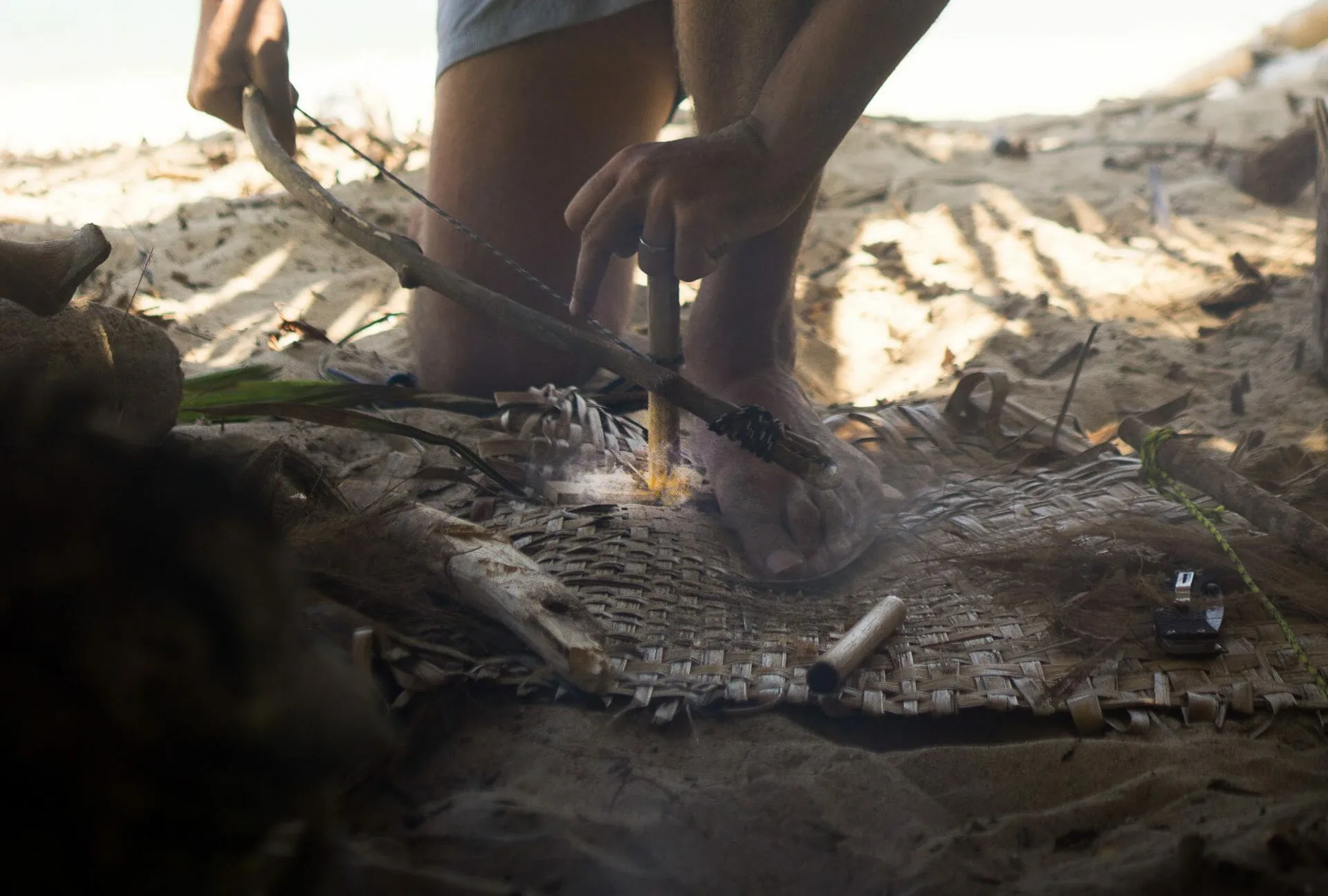 - Various methods of starting friction fires such as bow drill, hand drill, bamboo fire saw and even plough.
